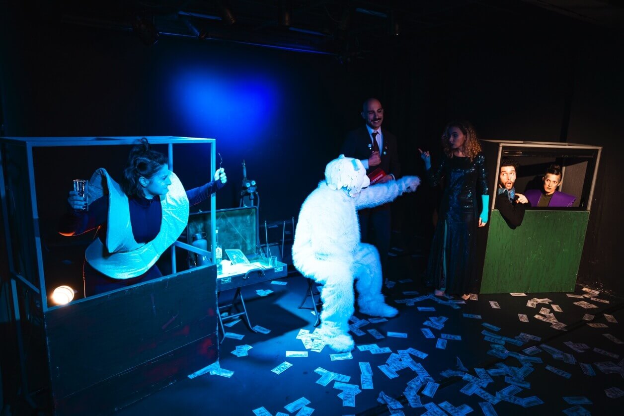 Esra Balaban’ın başarıyla hayat verdiği HFC karakteri, oyunun dünyasına olduğu kadar sahneye de taze bir soluk getiriyor. Kimyasalın etkileri ise çok geçmeden ortaya çıkıyor; CFC gözden düşüp lanetlenirken Kutup Ayısı’nın yaşam alanı yok ediliyor, felaket yalnızca kabuk değiştiriyor.