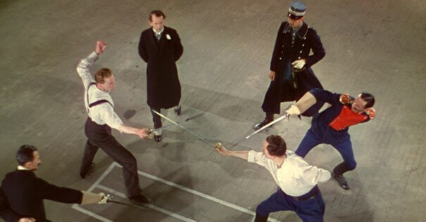 Filmde onurları için birbiriyle dövüşmek zorunda olan iki ana karakterin düellosuna tanık oluruz.  Bu sahneyi eşsiz kılan ise şudur: İki asker elinde kılıçları tam yerlerini alıp düelloyu başlattıkları sırada kamera yavaş yavaş tavana yükselir ve izleyiciye dövüş sahnesini göstermez. Çünkü -yönetmenin açıklamasına göre- dövüş önemsizdir, altını çizmek istediği yer birbirini hiç tanımayan iki askerin bu düellodan sonra filizleri atılmış olan, ömür boyu sürecek dostluktur. Filmin akışı için oldukça önem arz eden bu sahne ve cesur çekim tekniği, Scorsese’nin Raging Bull’daki büyük şampiyonluk maçı çekiminin çıkış noktası. İzleyenler de bilir ki Scorsese maçın kendisine çok odaklanmaz, aksine uzun bir süre sabit kameralı çekimle sadece Robert De Niro’nun ringe yürüyüşünü izleriz. Bu, o maça çıkana kadarki yolculuğun kıymetinin de simgesidir aslında.