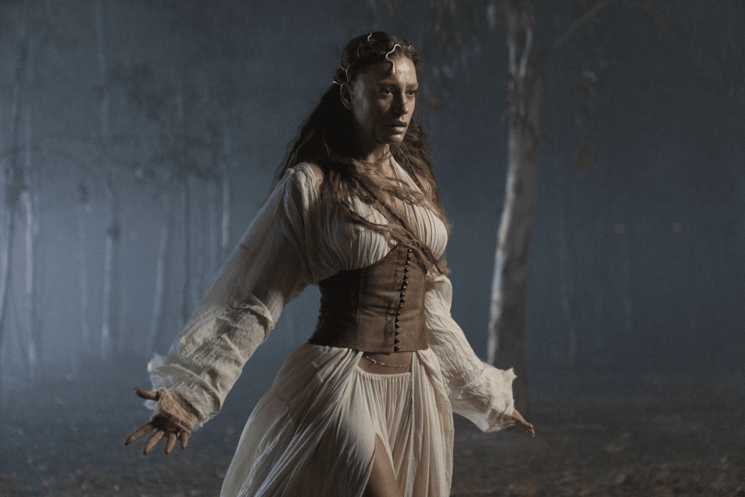 Dizinin ikinci sezonu, ilk sezonun finalinden devam ediyor. Lilith’in (Saadet Işıl Aksoy) uyanışıyla kehanet gerçekleşmeye başlıyor. Bu noktada göze çarpan ve yapay duran şey; Lilith karakterinin ses tasarımı. Saadet Işıl Aksoy, Lilith rolünde kendi sesini kullanmış olmasına rağmen kullanılan bir teknikle sesi bozulmuş, bir nevi “kötü” olduğunun vurgusu sesiyle süslenmeye çalışılmış. Ne yazık ki bu noktada yapılan bu tercih izleyiciyi yabancılaştırmakla birlikte karakter tasarımının gerçekliğini yok etmiş. Kötü bir karakterin ya da villain arketipinin yeteri kadar kötü olduğunu anlamak için böyle bir kullanıma ihtiyaç yok gibi duruyor. Lilith’in tasarımına baktığımızda kıpkırmızı bir kumaşla etrafta dolaşan birini görüyoruz. Kırmızı kumaş şehvet gibi duyguları simgeliyor olabilir. Keza kimse onun karşısında direnç gösteremiyor, ona karşı duramıyor.