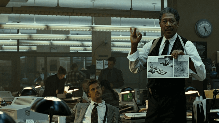 Peki, oyunculuklar? Morgan Freeman ve Brad Pitt, birbirine zıt ama uyumlu karakterleriyle adeta rolleri için doğmuş gibi görünüyorlar. Morgan Freeman, sakin, uzlaşmacı, kültürlü bir polis olarak karşımıza çıkarken, Brad Pitt sabırsız, agresif, ukala, ama aynı zamanda yeni evli bir polisi canlandırıyor. Bu ikiliyi başka bir filmde daha görmeyi istiyorum kesinlikle. Bu arada, seri katil rolündeki oyuncuyu unutmamak gerek. İsmini söylemeyeceğim (ki seyretmeyeniniz varsa aramızda diye), ama performansı deliliğiyle mükemmel bir performans sergiliyor.