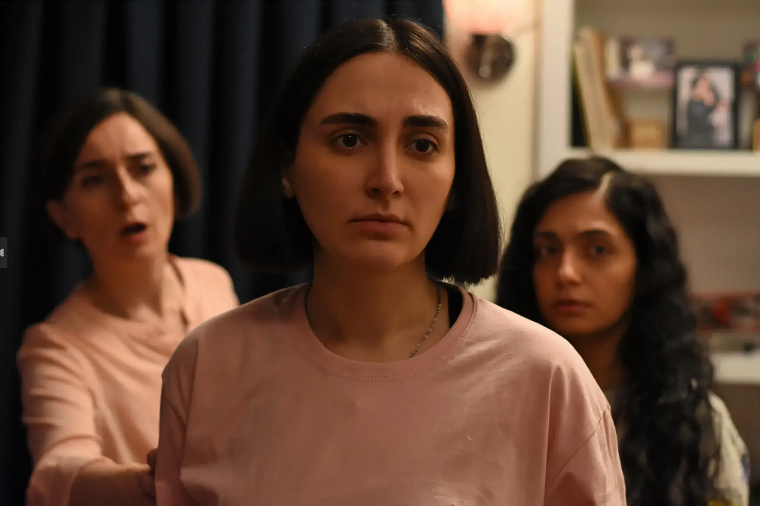 İran’da ise, tartışmasız daha sert koşullarda verilen kadın hakları mücadelesi eksenindeki toplumsal olaylar; ne tür ambargolara maruz kaldığını, medyanın benzer bir suskunluk ve manipülasyon çabalarını, dikey format gerçek görüntülerle sık sık hatırlatıyor. Ardından, ailenin yaşadığı birtakım olaylarla bu durumları karakterlere deneyimletiyor.